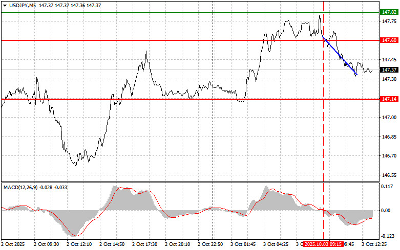 اختبار مستوى 147.60 في النصف الأول من اليوم تزامن مع اللحظة التي بدأ فيها مؤشر MACD بالتحرك نحو الأسفل من العلامة الصفرية، مما أكد نقطة الدخول الصحيحة لبيع الدولار. ونتيجة لذلك، انخفض الزوج بأكثر من 30 نقطة.