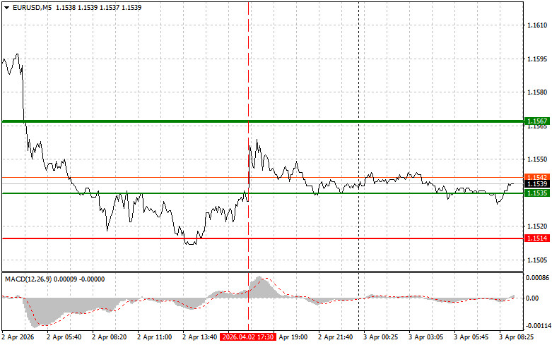 পরিকল্পনা #1: আজ যখন ইউরোর মূল্য 1.1576-এর লেভেলে বৃদ্ধির লক্ষ্যে 1.1554-এর (চার্টে সবুজ লাইন দ্বারা চিহ্নিত) লেভেলে পৌঁছাবে, তখন আপনি ইউরোর লং পজিশন ওপেন করতে পারেন। মূল্য 1.1576-এর লেভেলে গেলে, আমি লং পজিশন ক্লোজ করার পরিকল্পনা করছি এবং এন্ট্রি পয়েন্ট থেকে বিপরীত দিকে 30-35 পিপসের মুভমেন্টের উপর নির্ভর করে ইউরোর শর্ট পজিশন ওপেন করব। আজ ইউরোর তীব্র মূল্য বৃদ্ধির সম্ভাবনা নেই বললেই চলে। গুরুত্বপূর্ণ: এই পেয়ার কেনার আগে, নিশ্চিত করুন যে MACD সূচকটি শূন্যের উপরে রয়েছে এবং সেখান থেকে উপরের দিকে উঠতে শুরু করেছে।