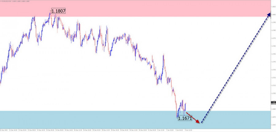 Prognose: Zu Beginn der Woche wird voraussichtlich der Abwärtsvektor entlang der unteren Grenze der Widerstandszone fortgesetzt. Eine Umkehrbildung und eine Abwärtsbewegung können in der zweiten Wochenhälfte erwartet werden.