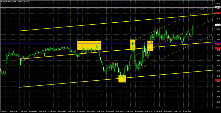 Im 5-Minuten-Chart entstanden am Freitag mehrere recht gute Handelssignale. Zunächst pendelte das Paar zwischen 1,3369 und 1,3377, was Tradern die Eröffnung von Short-Positionen ermöglichte. Zu Beginn der US-Sitzung wurde das Niveau von 1,3307 mit einer Marge von 3 Pips erreicht, sodass Verkaufspositionen mit Gewinn geschlossen und Long-Positionen eröffnet werden konnten. Eine Stunde später kehrte der Kurs in den Bereich von 1,3369–1,3377 zurück, wodurch auch Long-Positionen gewinnbringend geschlossen werden konnten und ein weiteres Verkaufssignal entstand. Am Ende der Woche gab es noch ein weiteres Kaufsignal. Die letzten beiden Signale brachten zwar keinen Gewinn, führten aber auch nicht zu Verlusten.