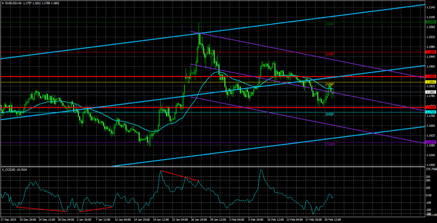The EUR/USD currency pair traded in a completely illogical manner on Monday once again. Moreover, the illogic of movements started not yesterday or even Friday. It began the week before last when labor market and unemployment data were published in the U.S. Recall that the unemployment rate fell for the second consecutive month, and the Nonfarm Payrolls (NFP) reached 130,000, which significantly exceeded expert forecasts. So what is negative about this? The issue is that the market currently sees no negativity for the dollar. The January NFP and unemployment figures were encouraging, but how do we handle the year-end data revisions for 2025? Since when did annual data become less important than monthly data? Over the course of 2025, the American economy created 181,000 jobs (slightly more than in January 2026). This should have prompted the dollar to plummet. How can we speak of a recovery in the labor market when the Bureau of Statistics revises its own reports downward every month, and the January outcome was only 130,000 new jobs, which is not very impressive?