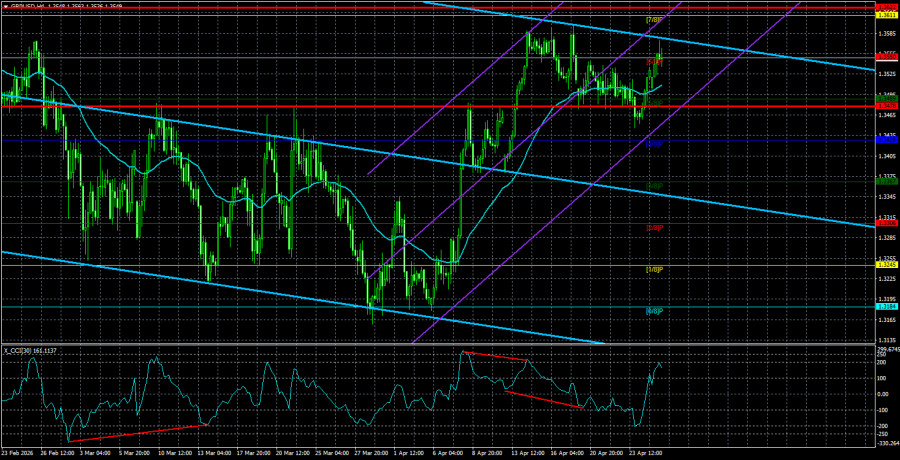 The GBP/USD currency pair continued its upward movement on Monday, resuming the trend on the previous Friday. Overall, we believe that without a new and serious escalation of the geopolitical conflict in the Middle East, the dollar has little to rely on. In recent months, we have consistently pointed out that the dollar has one trump card, but that card has an expiration date. Geopolitics indeed triggered a two-month rise in the U.S. dollar, as investors fled the burning Middle East. Everyone was protecting their assets, which led to the rise of the American dollar, which, in some situations, can still be seen as a "safe haven."