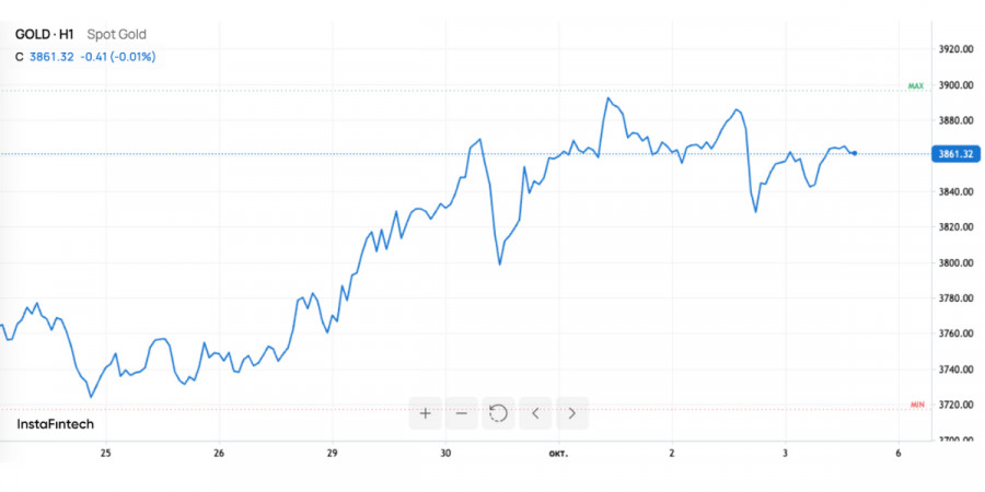 В отличие от рынка нефти, золото в начале октября 2025 года переживает исторический взлет и становится реальным бенефициаром глобальной неопределённости и мягкой денежной политики. Котировки XAU/USD на этот момент зафиксировали новые абсолютные максимумы в диапазоне $3,860–$3,896 за унцию, прочно удерживаясь в зоне рекордных отметок.
