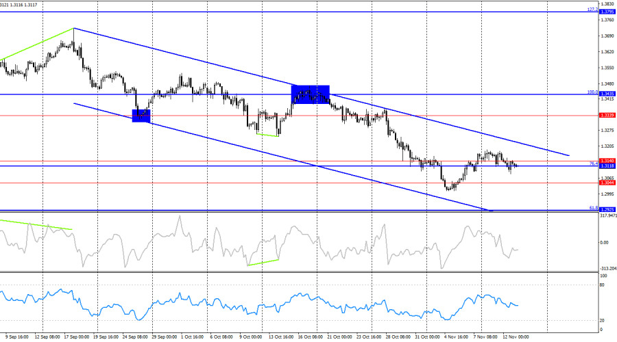 Четвертый день подряд британец находится между уровнями 1,3110 и 1,3186. Трейдеры проигнорировали практически все данные и новости, поступившие в ходе недели. В понедельник они проигнорировали анонс Трамп о завершении «шатдауна», во вторник – данные по безработице в Великобритании (небольшая реакция последовала, но боковик сохранился), сегодня ночью – официальное завершение «шатдауна», сегодня утром – данные по ВВП и промышленному производству в Великобритании. Британская экономика по итогам третьего квартала показала рост на 0,1% кв/кв, что ниже даже самых слабых прогнозов. Промышленное производство показало еще более «потрясающий» результат, потеряв в объемах 2% м/м при ожиданиях трейдеров -0,2%. Таким образом, британец уже давно мог выполнить закрепление под уровнем 1,3110 и продолжить процесс падения, ведь на этой неделе из Америки поступают только неплохие новости, а из Британии – только разочаровывающие. Тем не менее, быки удерживают свой плацдарм в виде уровня 1,3110 и явно намереваются провести новое наступление.