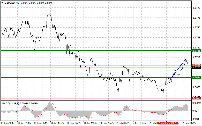 Тест цены 1.3684 пришелся на момент, когда индикатор MACD только начинал движение вверх от нулевой отметки, что стало подтверждением правильной точки входа на покупку фунта. В результате пара выросла на 30 пунктов.