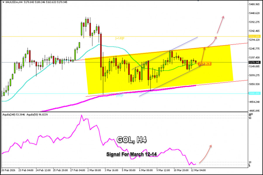 Vì chỉ báo Eagle đã chạm vùng quá bán, về mặt kỹ thuật vàng được kỳ vọng sẽ tiếp tục xu hướng tăng trong những ngày tới và thậm chí có thể lên vùng +1/8 Murray quanh 5.313 USD, và cuối cùng là quay lại đỉnh tháng 2 quanh mức 5.450 USD.