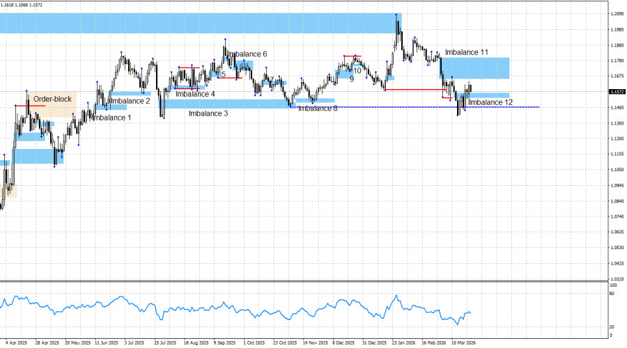 لا توجد حاليًا نماذج جديدة لفتح الصفقات. في المستقبل القريب قد يُختبر عدم التوازن 11، وإذا تفاعل السعر مع هذا النموذج فقد يستأنف الحركة الهابطة بأهداف أسفل 1.1400. لكن هذا يتطلب دعمًا من العوامل الجيوسياسية. وإذا حوّل السوق تركيزه مجددًا إلى العوامل الاقتصادية التقليدية، فإن البنك المركزي الأوروبي وBank of England قد مهدا الأسبوع الماضي لارتفاع اليورو والجنيه عبر الإشارة إلى الاستعداد لتشديد السياسة النقدية. إلا أن المتداولين يركزون في الوقت الراهن بشكل أكبر على مضيق هرمز وإيران.